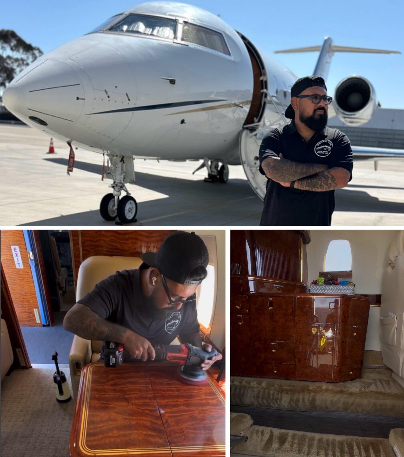 • Application of aviation-safe sealants to protect woodwork and enhance depth, clarity, and shine